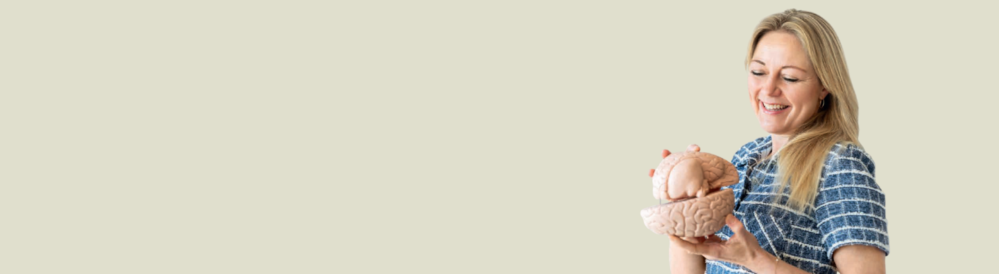 Helt grundlæggende er det vigtigt at forstå, at hjernen er plastisk. Den forandrer sig hele livet afhængigt af, hvordan vi bruger den. Vi kan hele tiden skabe nye forbindelser i hjernen og vænne den til at gøre noget andet, end vi er vant til. Det betyder, at du – selv med sygdom og mange år med vaner, du måske er træt af – kan begynde at forme nye vaner eller det, jeg kalder stier i hjernen. Det er aldrig for sent, forklarer Anette Prehn.